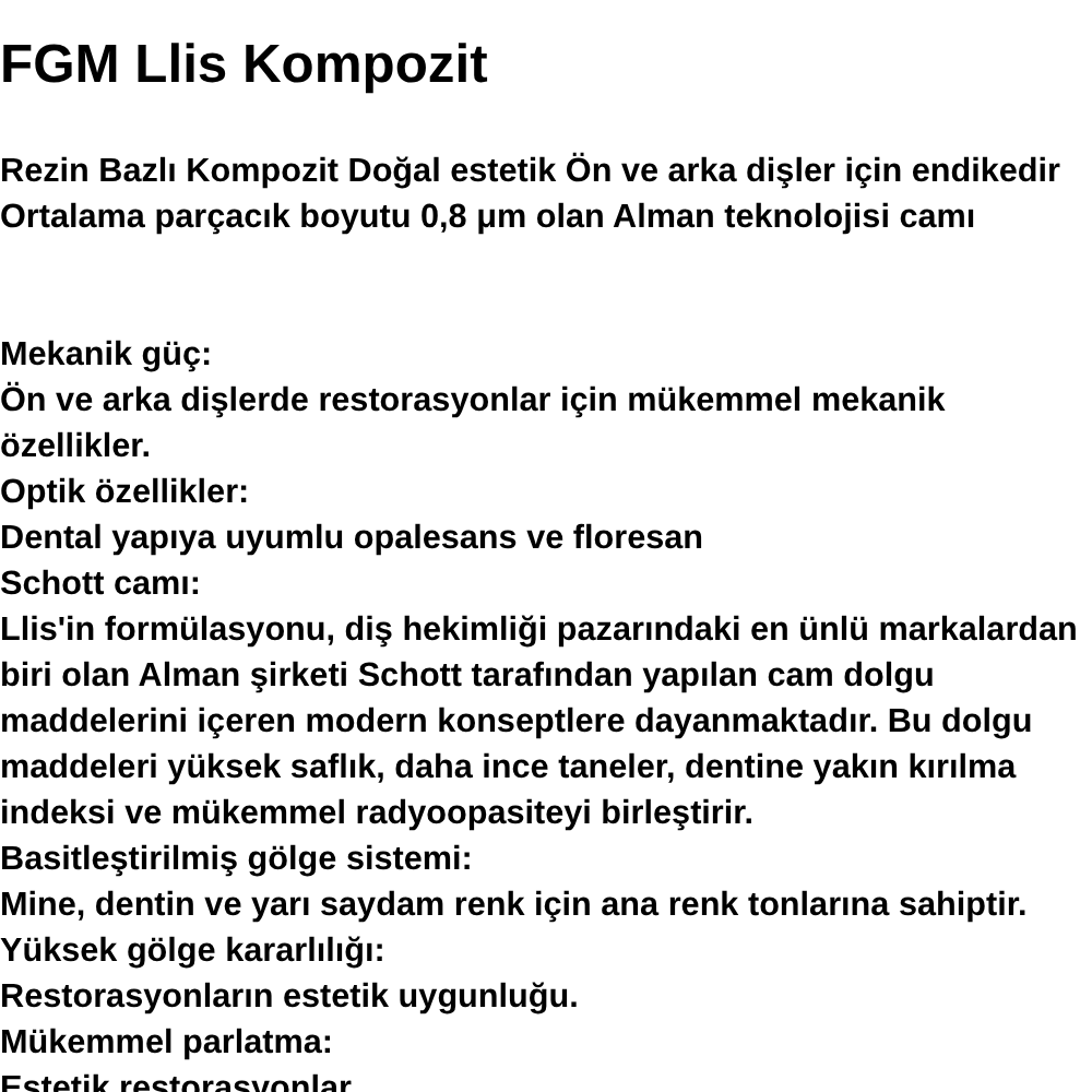 Ambalaj İçeriği 1 x 4 gr şırınga FGM Llis Kompozit
